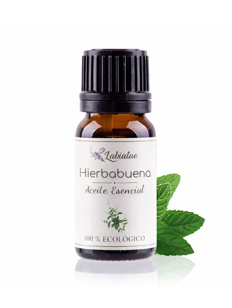 Aceite esencial ecológico de hierbabuena, obtenido por destilación por arrastre de vapor del tallo florido. Rico en mentol, se caracteriza por su aroma intenso, fresco y claramente mentolado, con un efecto revitalizante inmediato.