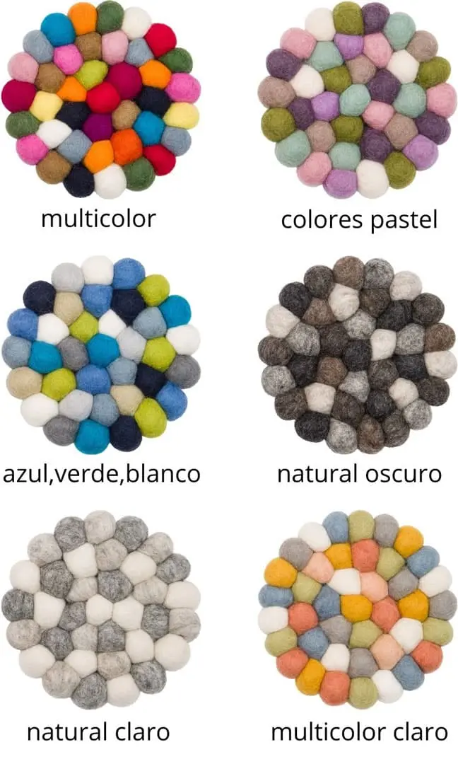 Colores disponibles: multicolor, colores pastel, natural oscuro, natural claro, multicolor claro y combinación de azul-verde-blanco.