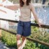 La bermuda azul marino de lino para mujer de ROADE redefine la comodidad con un toque de elegancia.