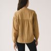 La espalda incorpora un canesú horizontal con frunce, que genera volumen y una caída más fluida sin ajustar al cuerpo. El bajo ligeramente curvado refuerza ese efecto y permite llevarla tanto por dentro como por fuera.