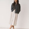 El tejido presenta una textura vertical sutil que aporta profundidad sin necesidad de estampados, manteniendo un aspecto natural y equilibrado.