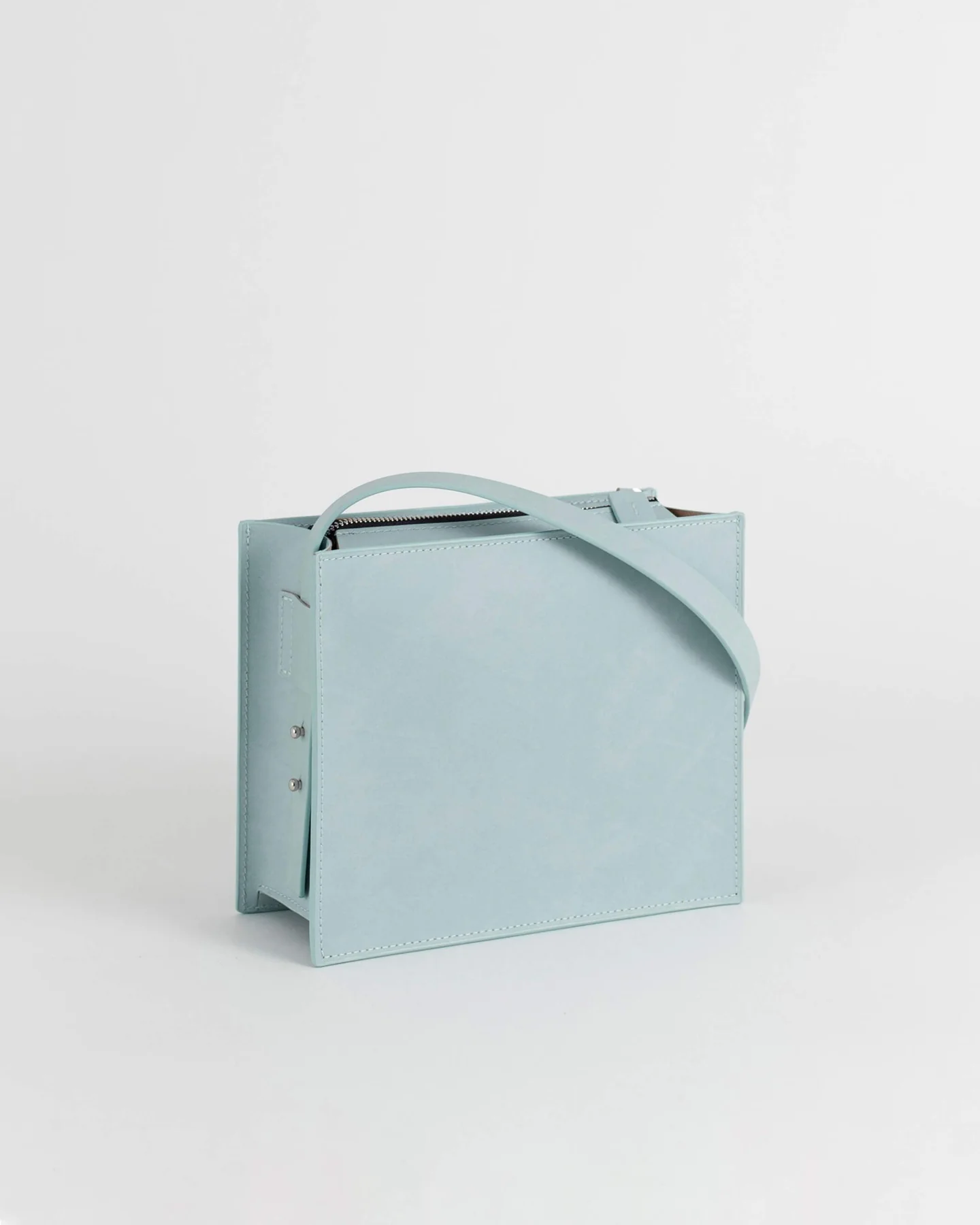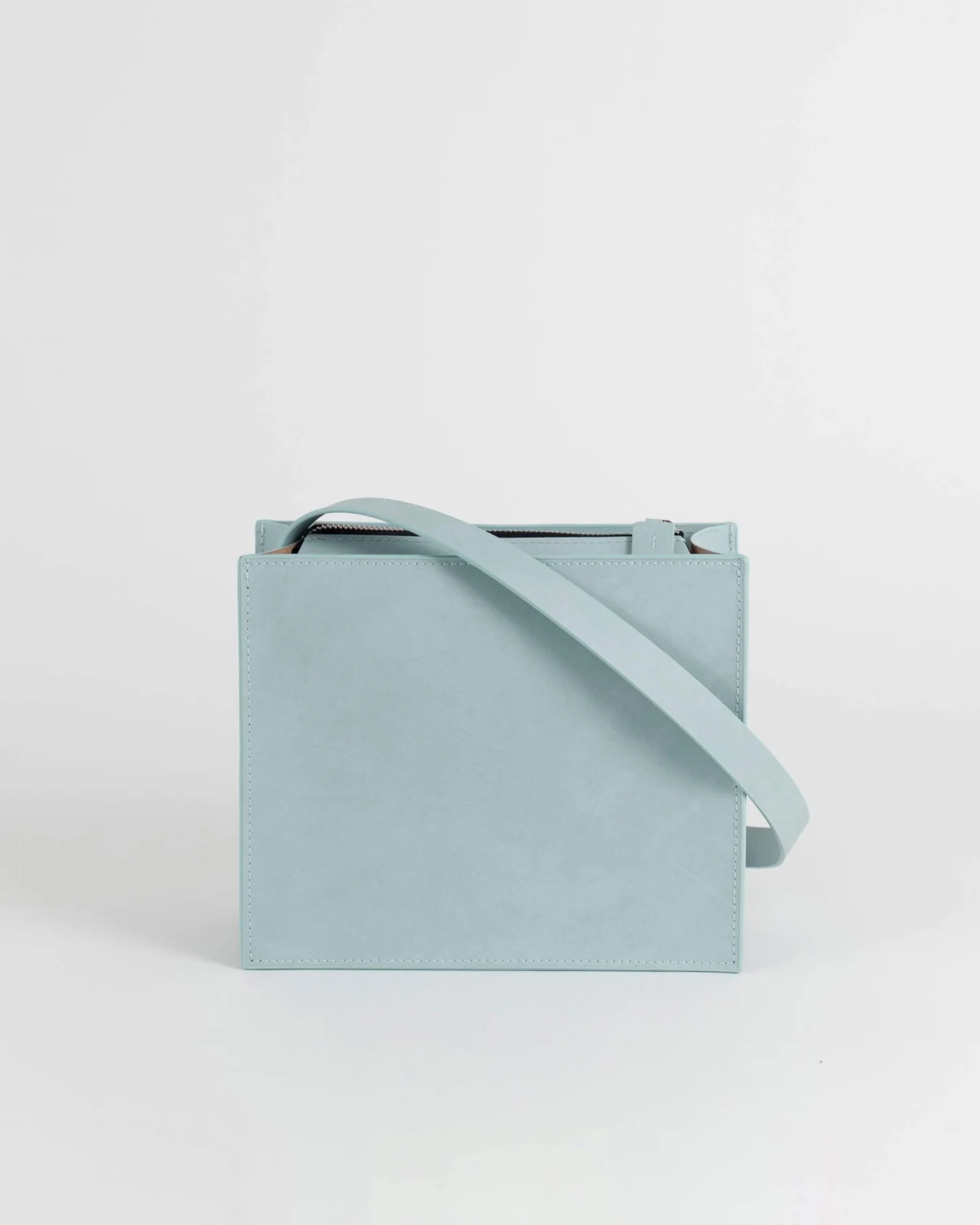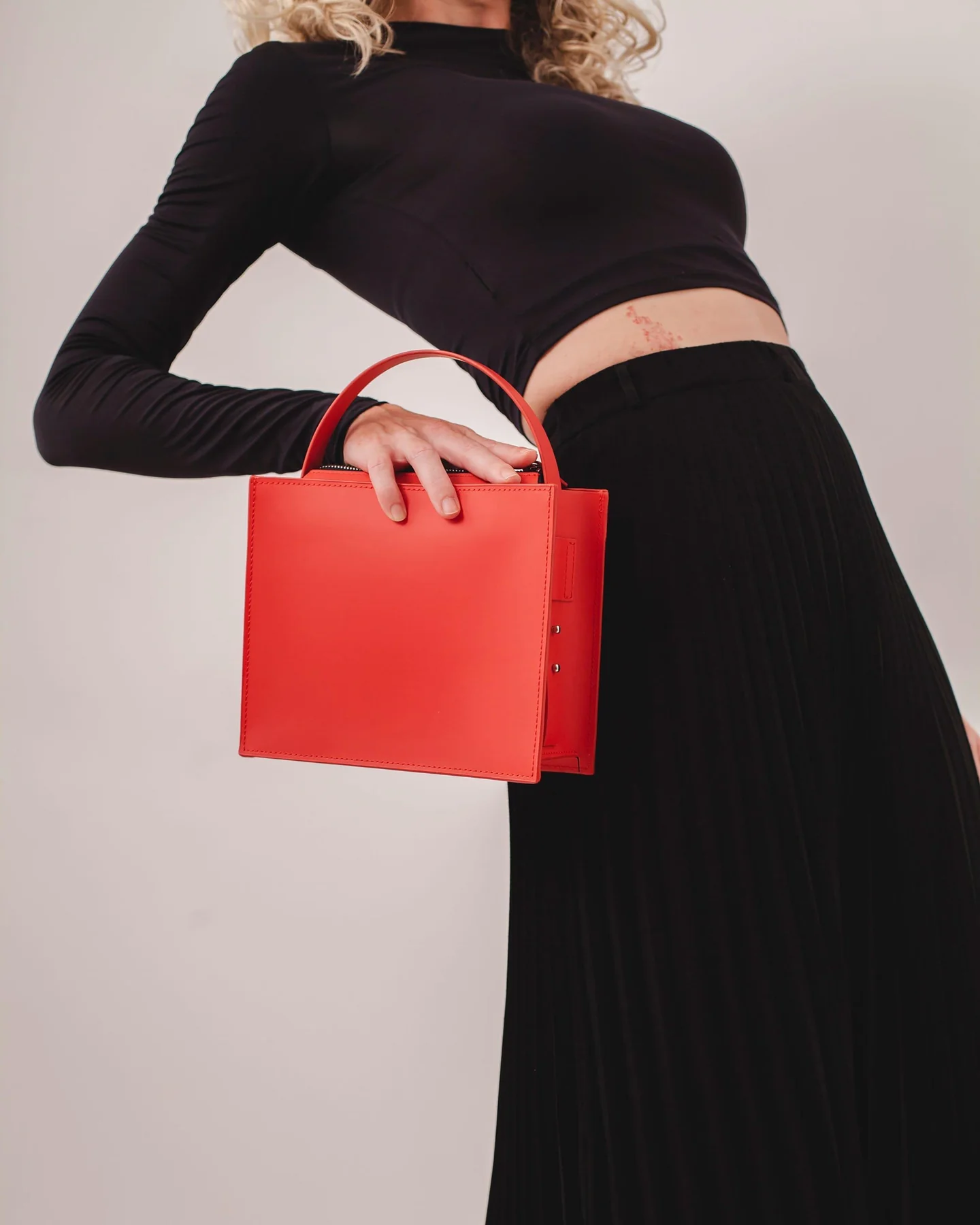 Descubre el bolso cuadrado de cuero reciclado, el complemento ideal para quienes valoran la funcionalidad sin renunciar al diseño.