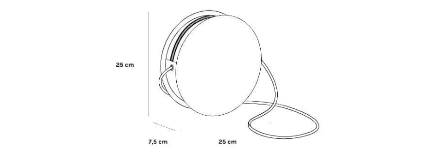 Dimensiones: 25 cm de diámetro por 7,5 cm de fondo. Cinta de 140 cm