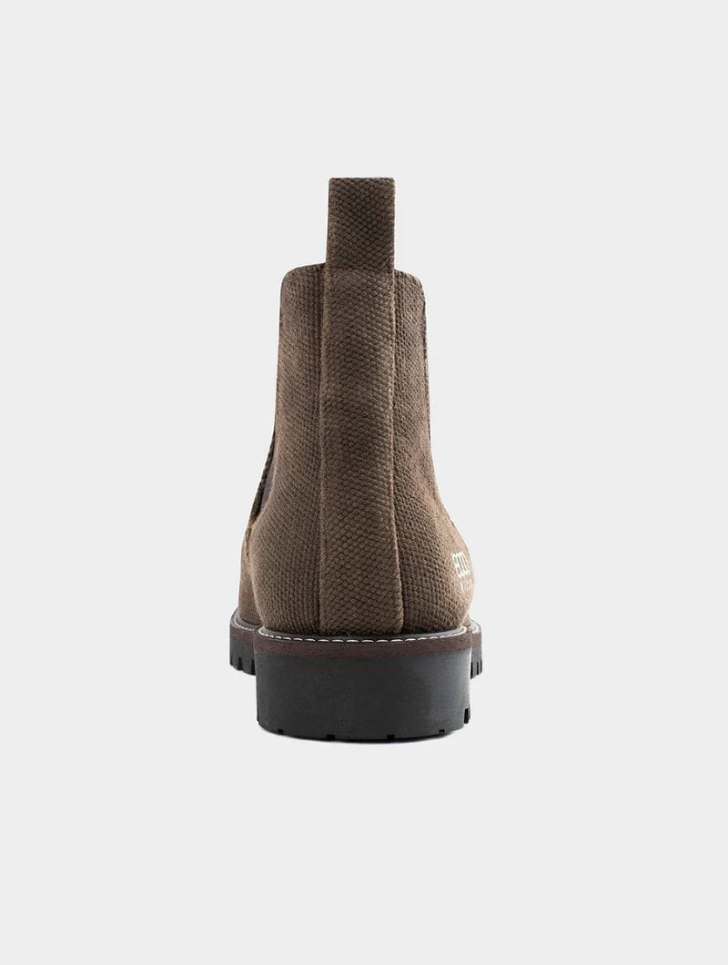 Botines chelsea sostenibles confeccionados con tejido de cáñamo impermeable y transpirable. Cuentan con una suela rugosa para mayor agarre y una plantilla exclusiva de cáñamo, antibacteriana y antiolor, que mantiene los pies secos y cómodos durante todo el día.