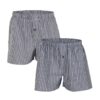 Su corte amplio y su cintura elástica te harán sentir muy cómodo. Vienen en pack de 2: uno con estampado de rayas y otro de cuadros. Cuentan con un botón de cierre en la bragueta.