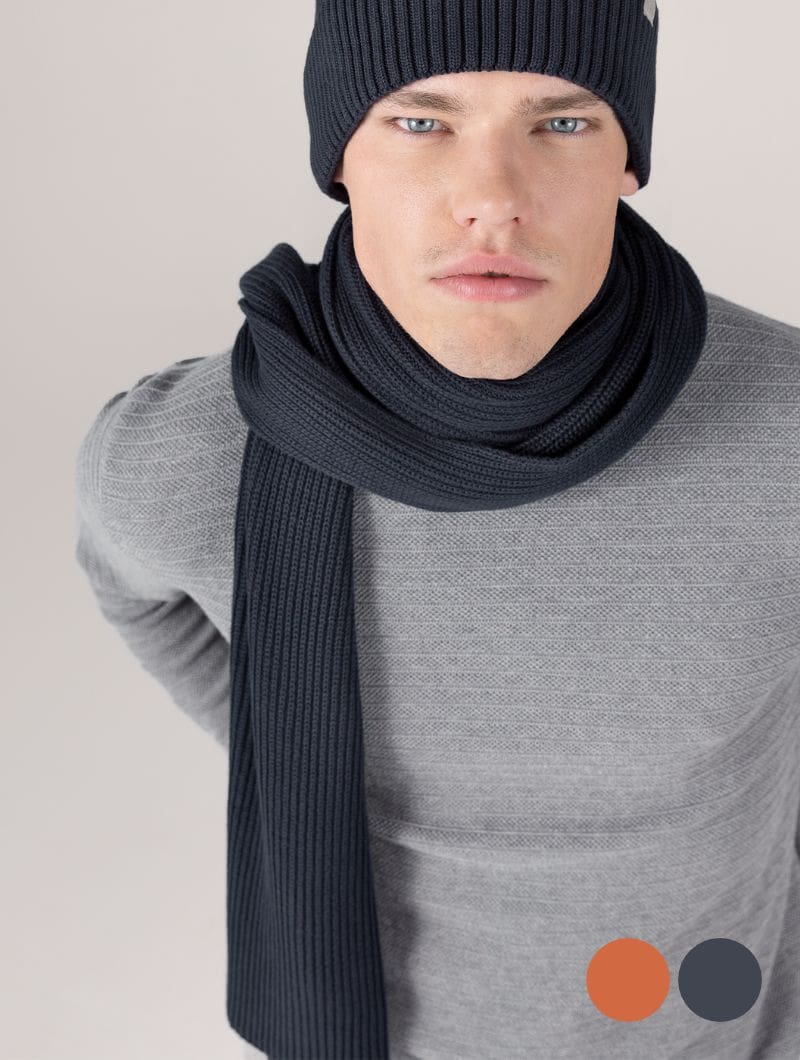Bufanda de punto en canalé grueso confeccionada con 100% algodón orgánico certificado GOTS.