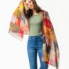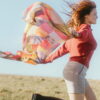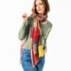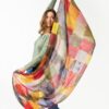 Bufanda de 100% lana con un estampado de acuarela que mezcla tonos vibrantes y suaves para lograr un efecto artístico y atemporal.