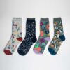 Calcetines de flores para mujer en pack de 4 con caja reutilizable.