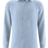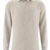 Camisa de cuello italiano con bolsillo en el pecho. Patrón de corte normal.