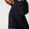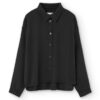 Camisa holgada negra de tencel, con un corte oversize y cuello camisero.
