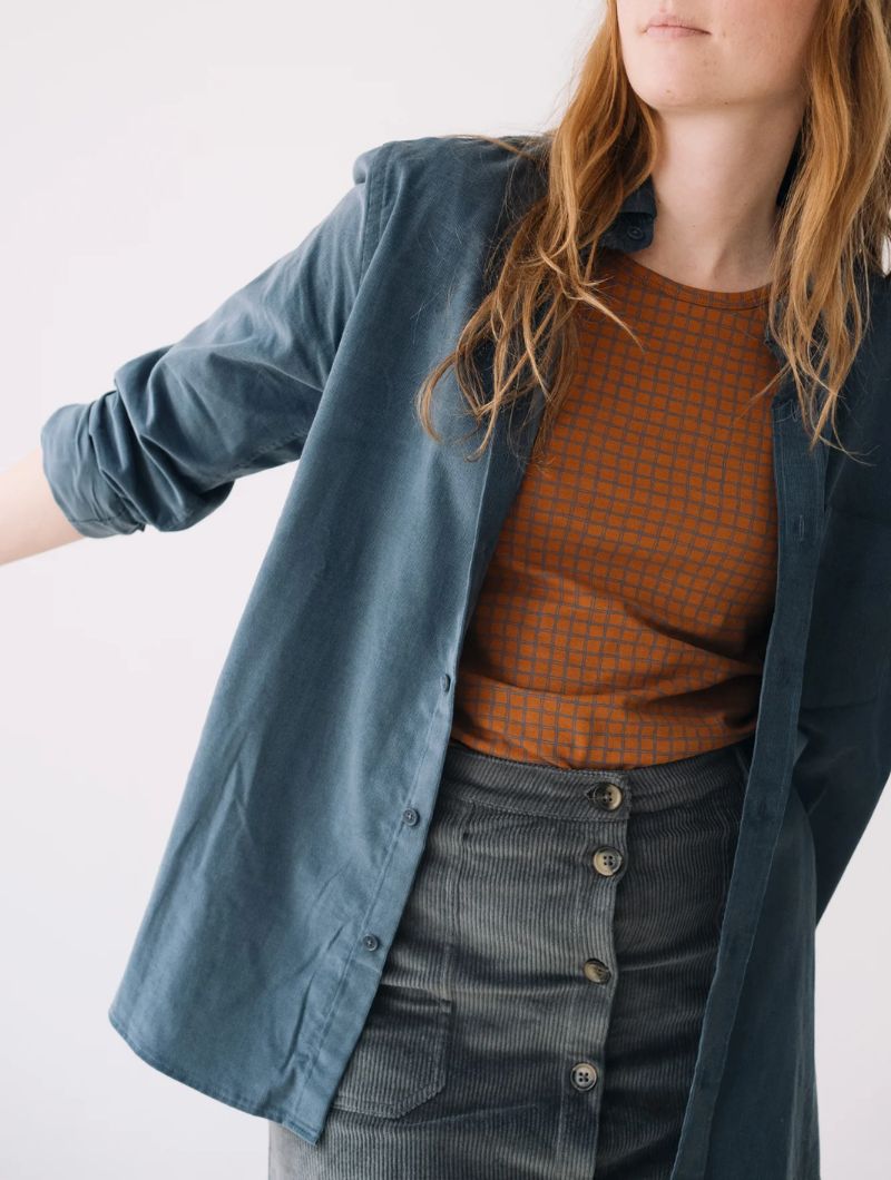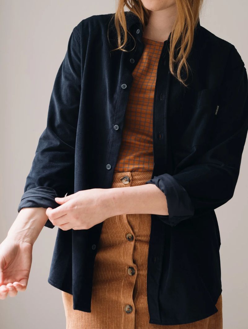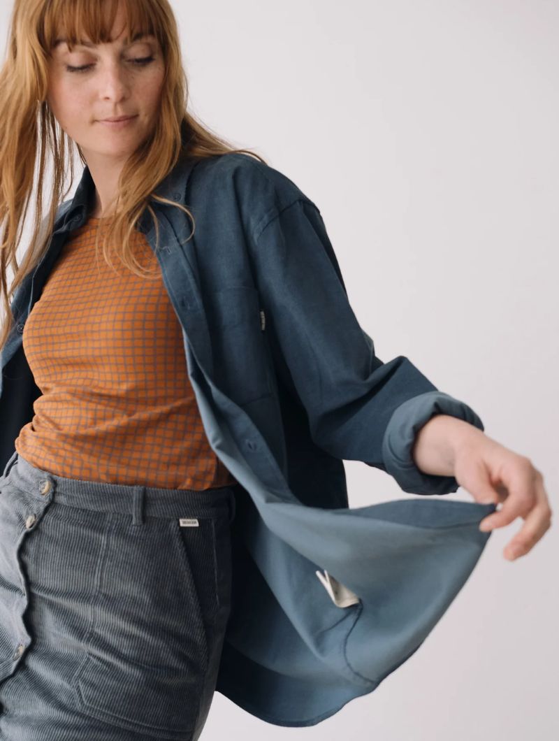 Camisa de micropana confeccionada en 100% algodón orgánico certificado GOTS, un tejido natural, suave y cálido perfecto para el entretiempo o los días más frescos. Su textura ligera la hace cómoda y agradable al tacto, manteniendo el equilibrio entre abrigo y transpirabilidad.
