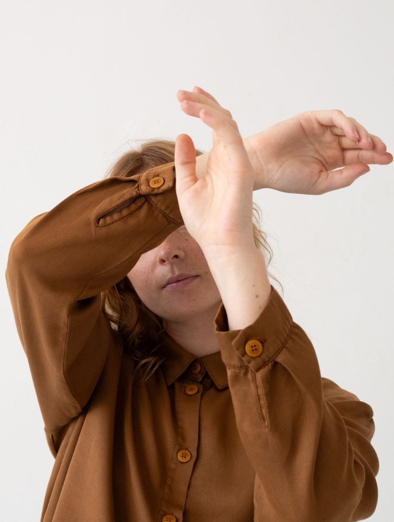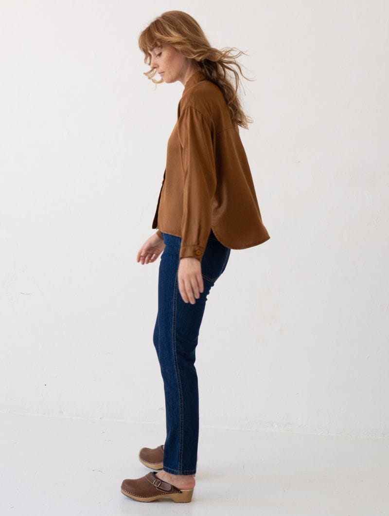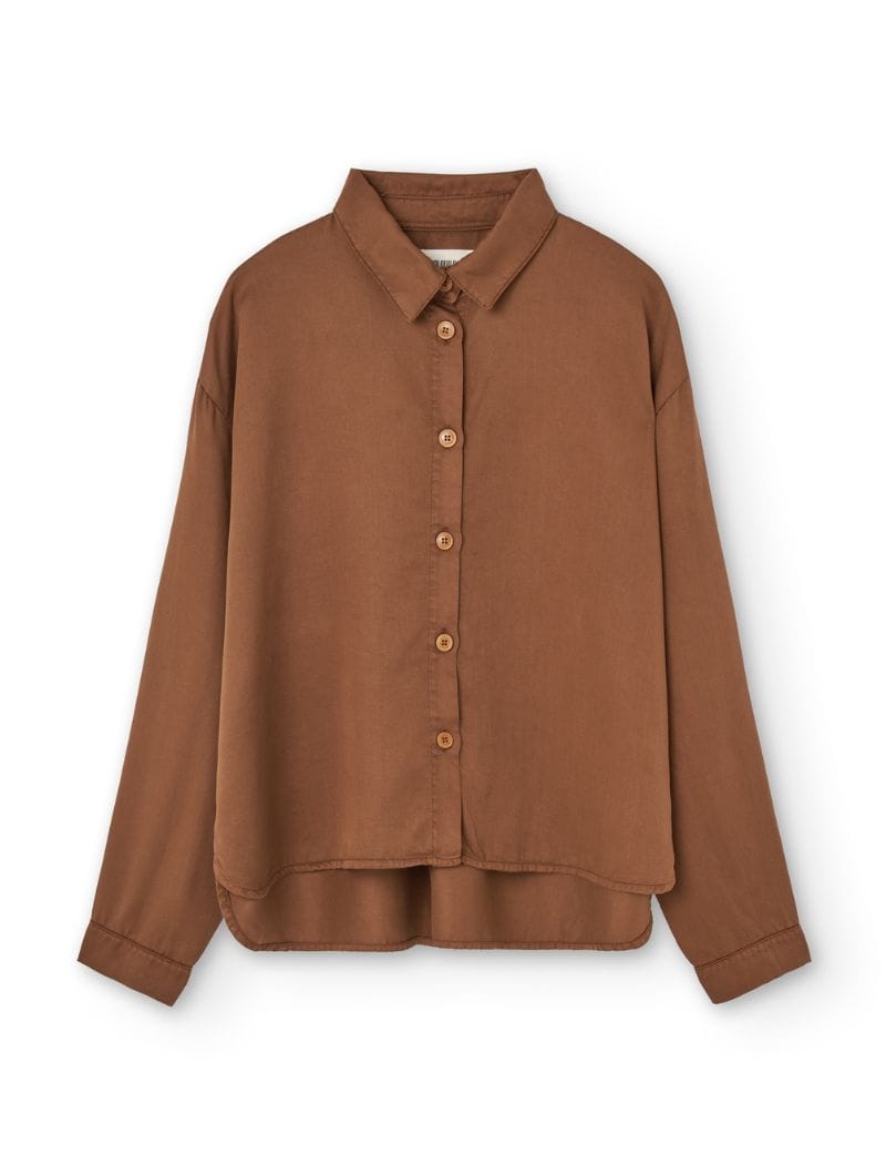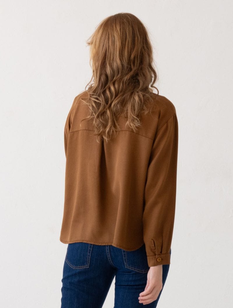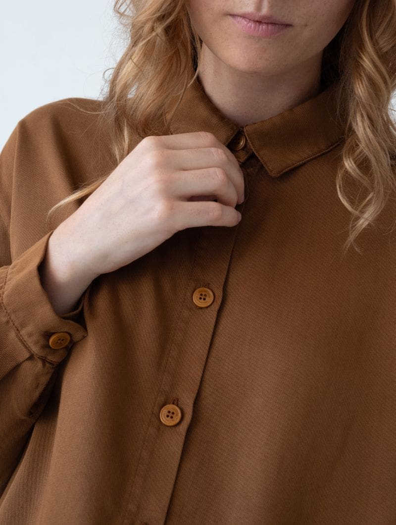 Camisa de tencel en color teja para mujer, con diseño amplio y ligero.