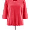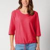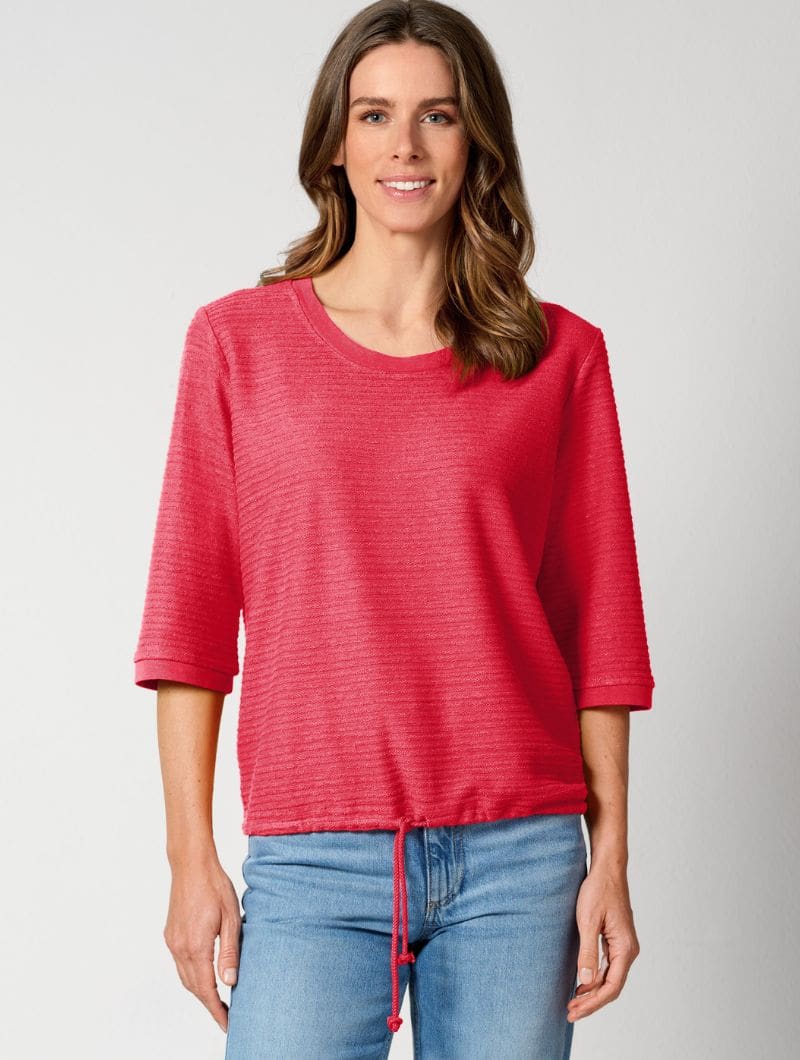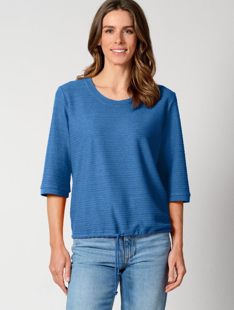 Camiseta de manga tres cuartos con un corte holgado y tejido acanalado de tacto aterciopelado.