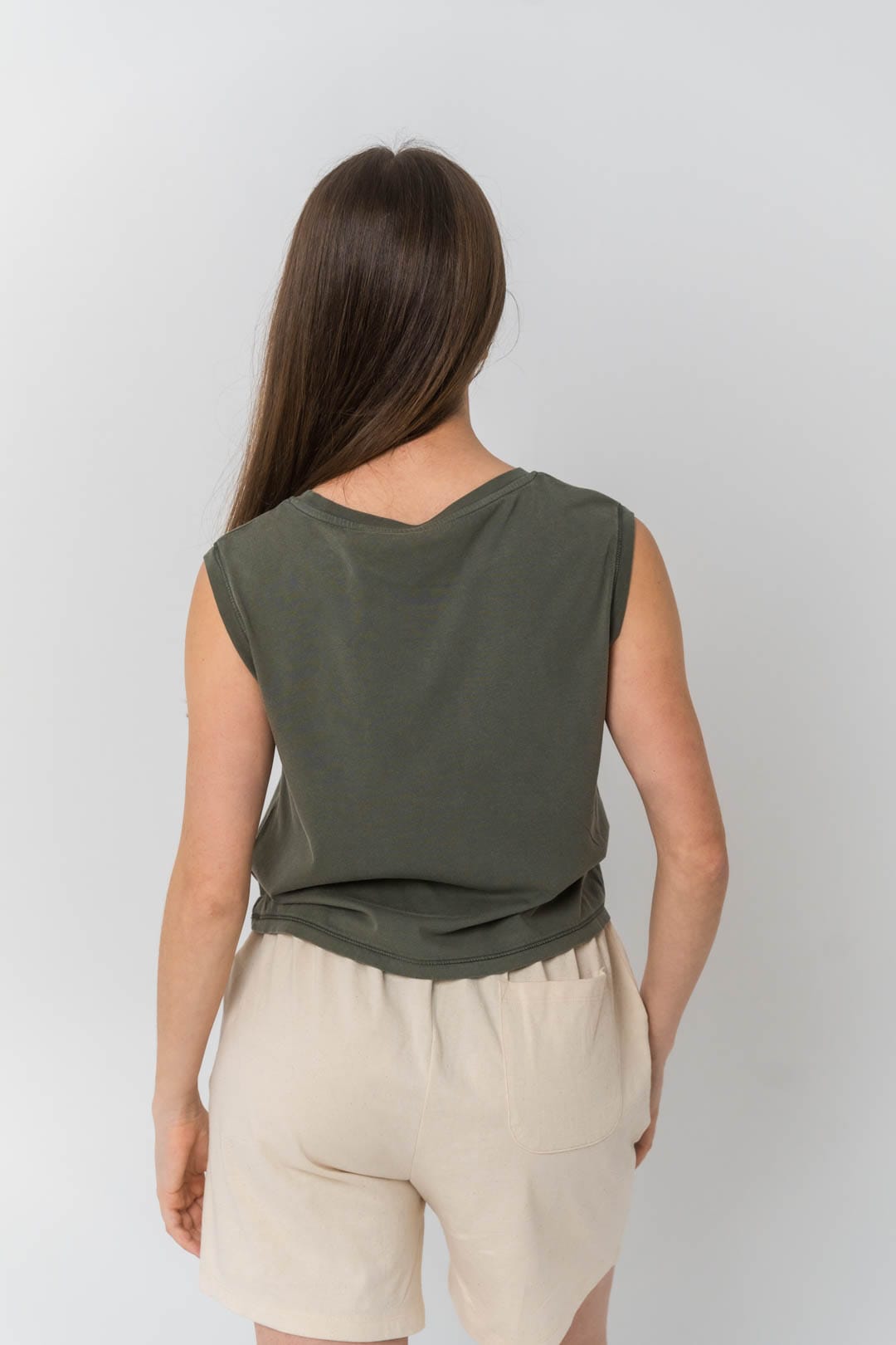 Una prenda sencilla, con impacto positivo. Esta camiseta corta sin mangas está confeccionada con algodón 100% orgánico certificado. Es ligera, suave al tacto y perfecta para el verano o para combinar en capas.