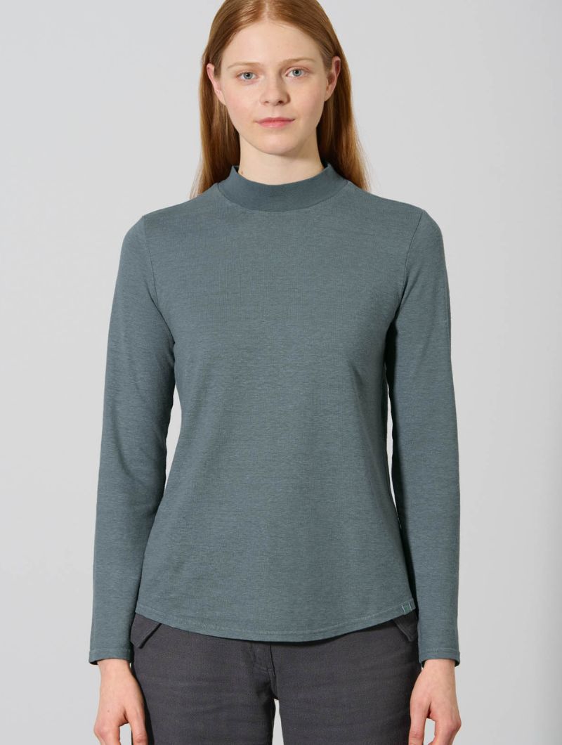 Camiseta de cuello alto confeccionada en tejido de punto ecológico, con un corte recto y un acabado limpio que la hace apta tanto para llevar debajo como como prenda principal.