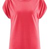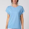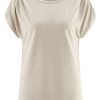 Camiseta de cuello barco con un diseño moderno y favorecedor. El ligero fruncido en los hombros aporta un toque sutil de volumen, realzando la silueta.