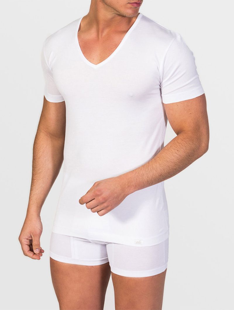 Camiseta interior de cuello pico Windsor confeccionada en España con hilo de Escocia de alta calidad.
