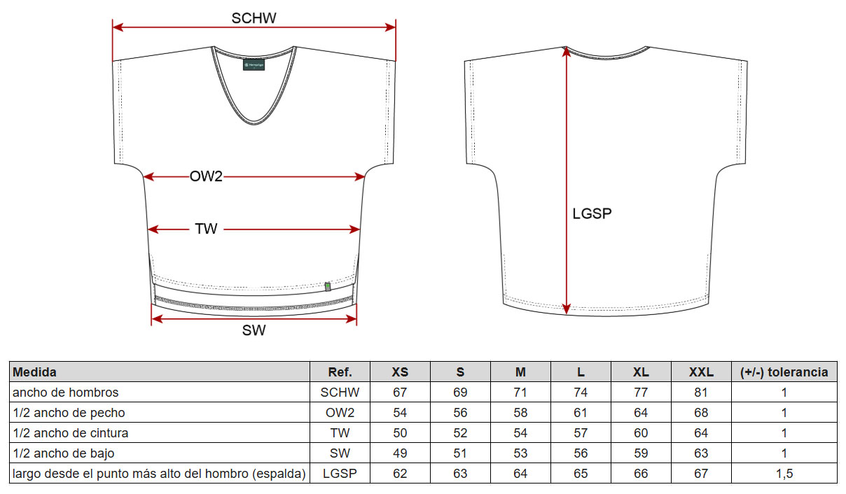 Puedes consultar aquí las medidas en centímetros de la prenda: