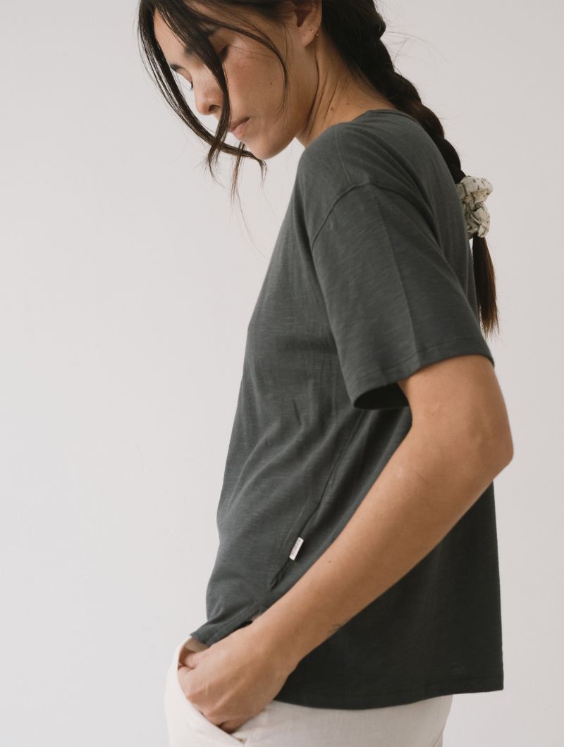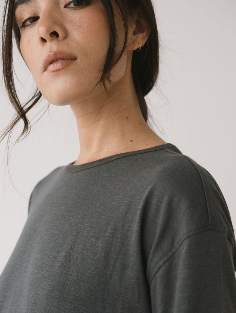 Confeccionada en Slub Jersey, mezcla de algodón orgánico certificado GOTS y TENCEL™ Modal, que combina transpirabilidad, frescura y confort.