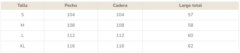 Si buscas un ajuste más amplio y relajado, puedes optar por la talla superior. Si prefieres que la prenda quede más ajustada al cuerpo, elige la talla inferior.
