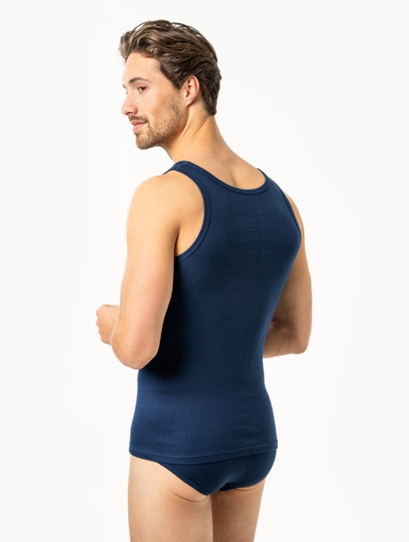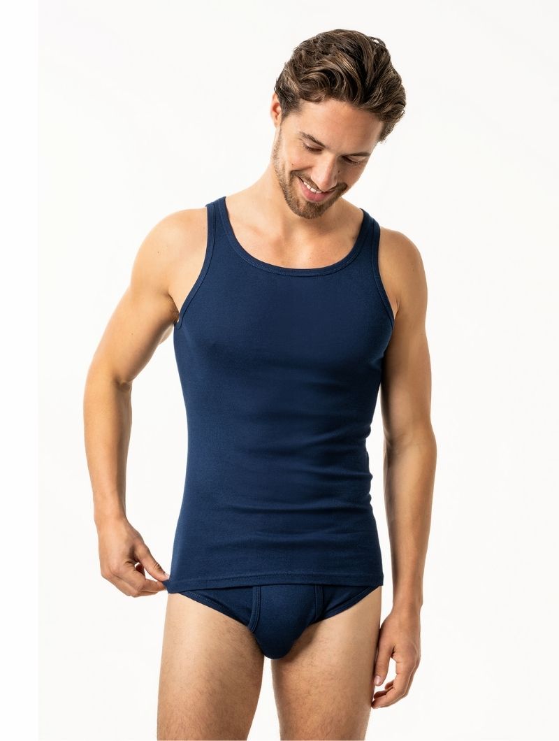 Se trata de una prenda interior merculina de calidad. Está disponible en 5 colores básicos: azul, natural, azul marino, negro y gris.