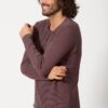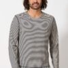Camiseta de corte normal en punto jersey de 55% cáñamo y 45% algodón orgánico. El diseño combina rayas en colores discretos con costuras planas a contraste que le dan un aire actual. La espalda ligeramente más larga y las aberturas laterales en el bajo aportan comodidad extra y un detalle diferente.