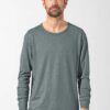 La camiseta lisa manga larga está confeccionada en una mezcla de cáñamo (55%) y algodón orgánico (45%) con certificado Organic Content Standard. Los tintes utilizados son ecológicos y cuentan con el sello OEKO-TEX® Standard 100.