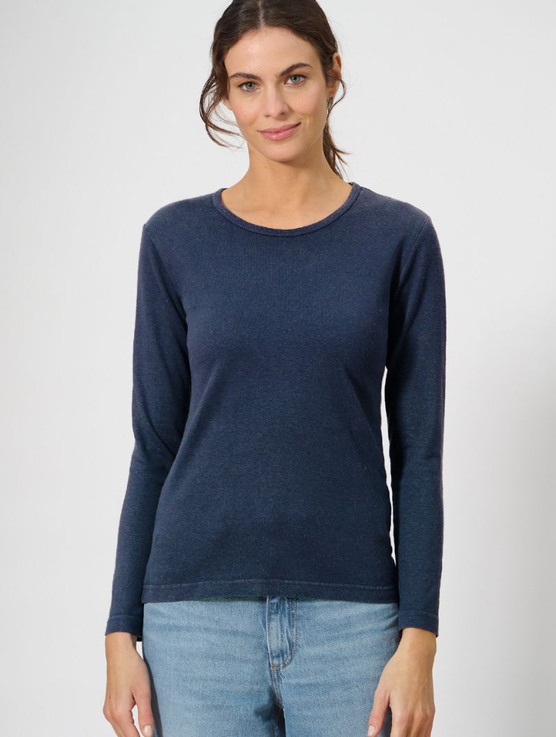 Camiseta básica de manga larga con corte ceñido y acabado limpio, ideal para usar sola o como capa interior.