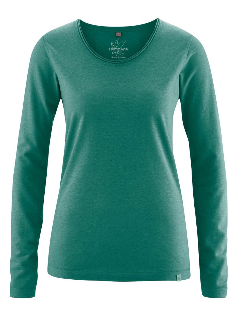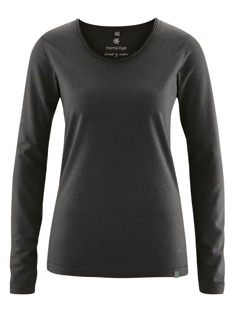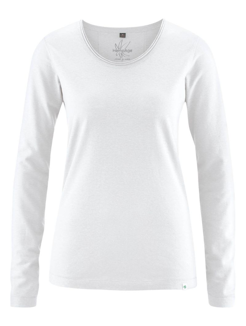 Camiseta básica de manga larga con escote redondo y un delicado borde enrollado.