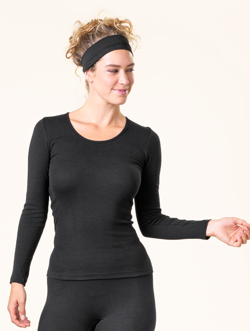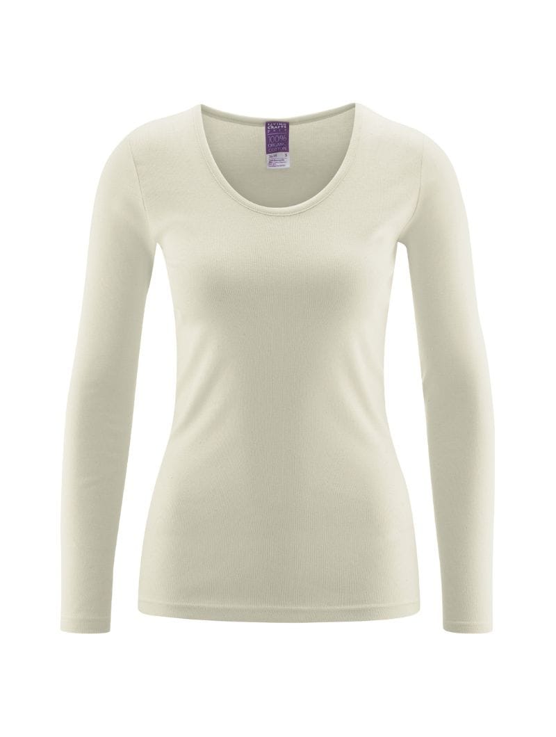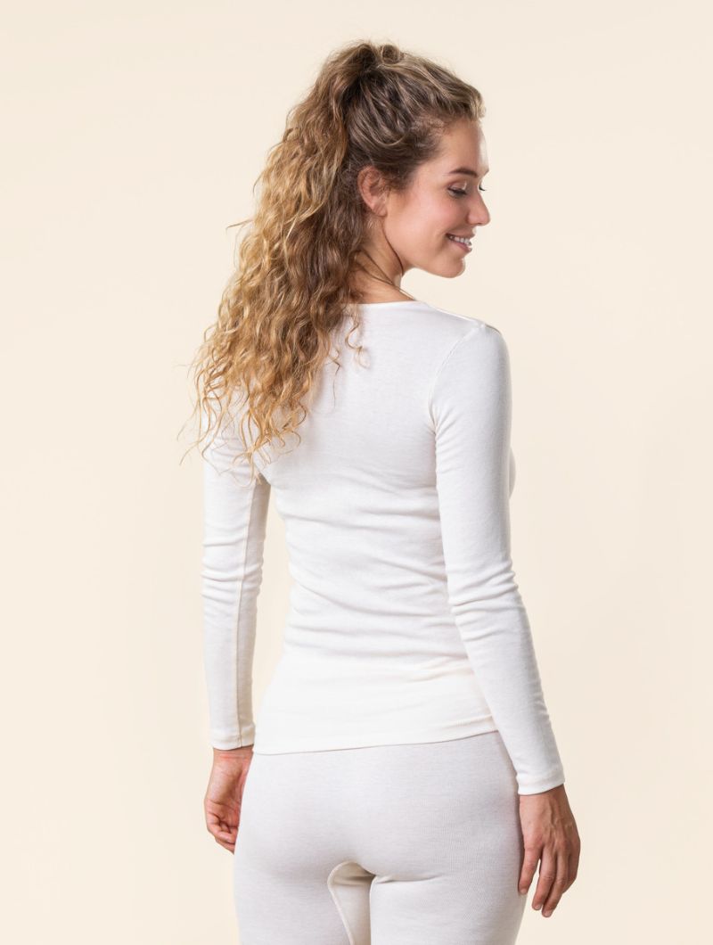 La camiseta de manga larga interior ecológica ofrece una comodidad excepcional gracias a su diseño sin costuras laterales y su tejido de fina calidad en canalé.