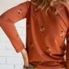 Camiseta de manga larga en un encantador tono rojo crepúsculo, una prenda que se ha convertido en un básico para cualquier armario.