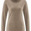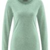 Esta cálida camiseta para mujer presenta escote barco y corte recto. De diseño atemporal, está disponible en cinco suaves tonos de tejido jaspeado.