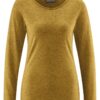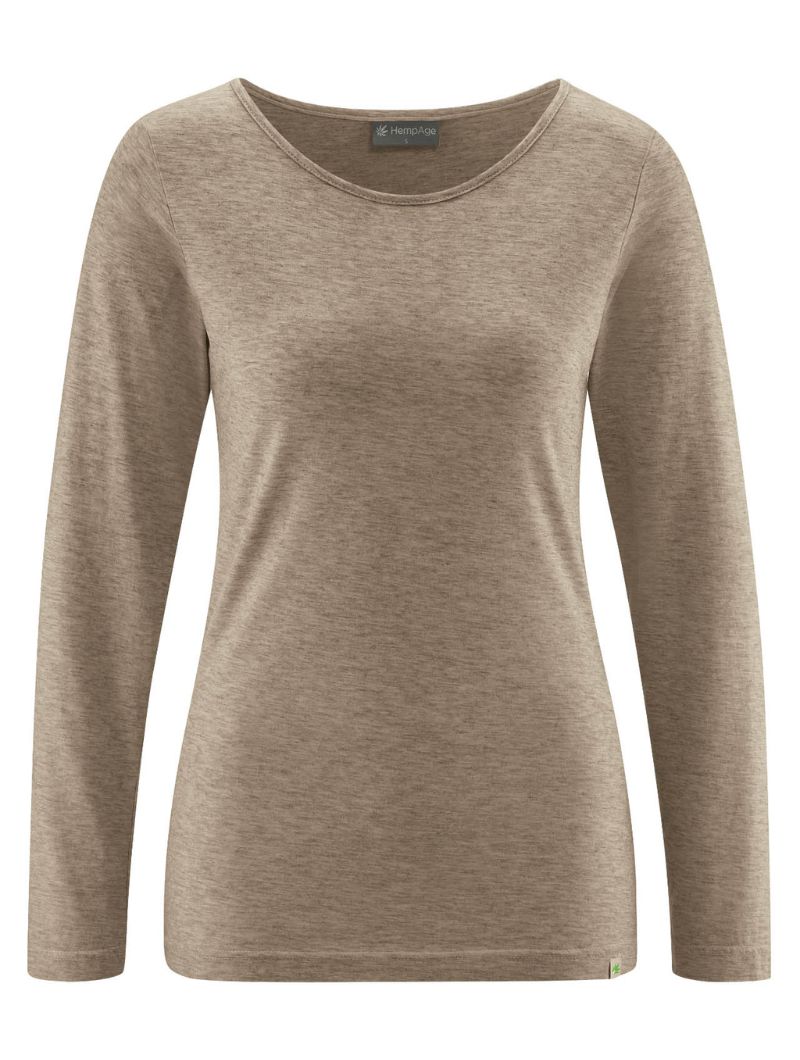 La camiseta mujer manga larga está confeccionada en una mezcla de 80% de algodón orgánico con certificados Organic Content Standard (OCS), 14% de cáñamo y 6% de lana de jak. Los tintes utilizados cuentan con el sello OEKO-TEX® Standard 100, garantizando así un bajo impacto medioambiental.