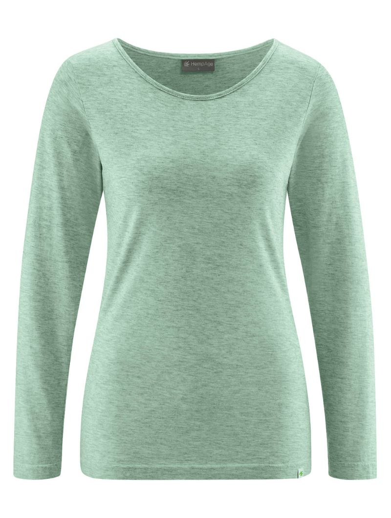 Camiseta mujer manga larga de tejido jaspeado.