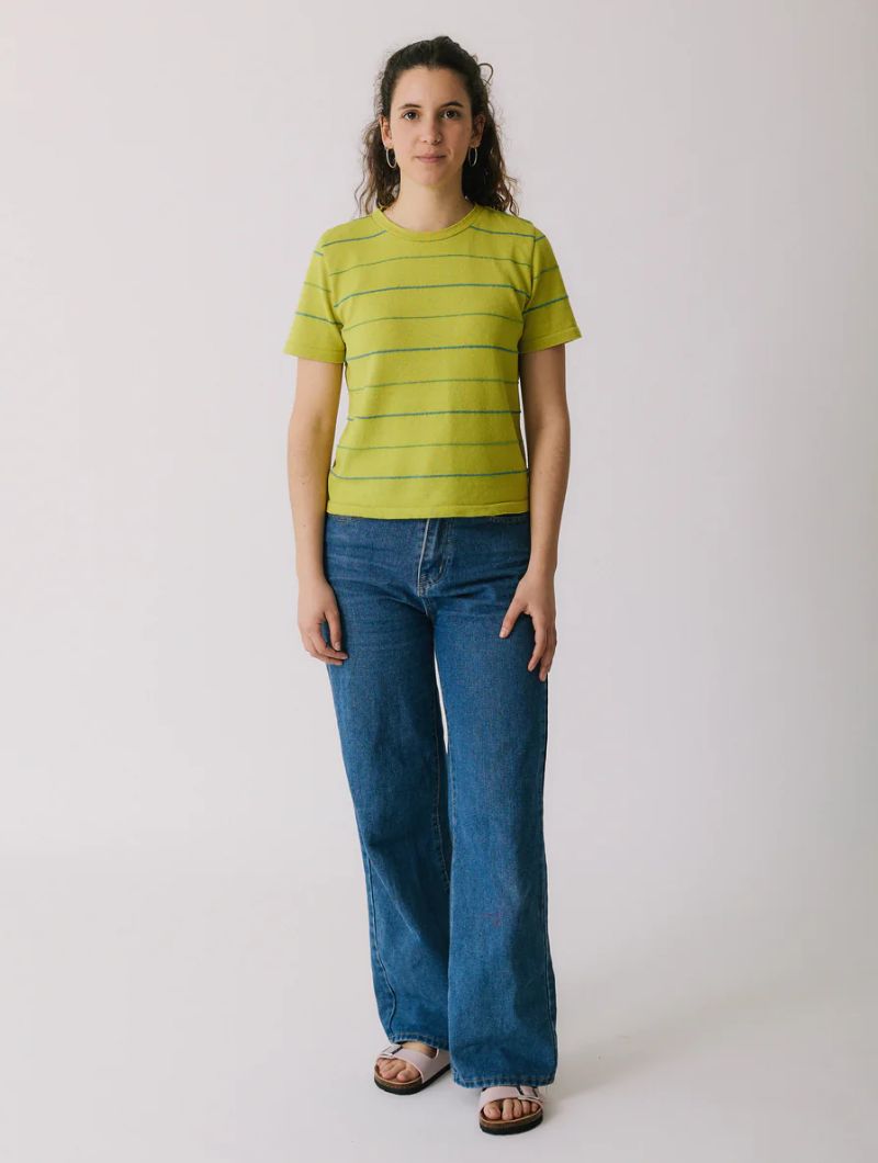 Camiseta de punto de manga corta con corte recto, pensada para adaptarse al cuerpo con naturalidad.