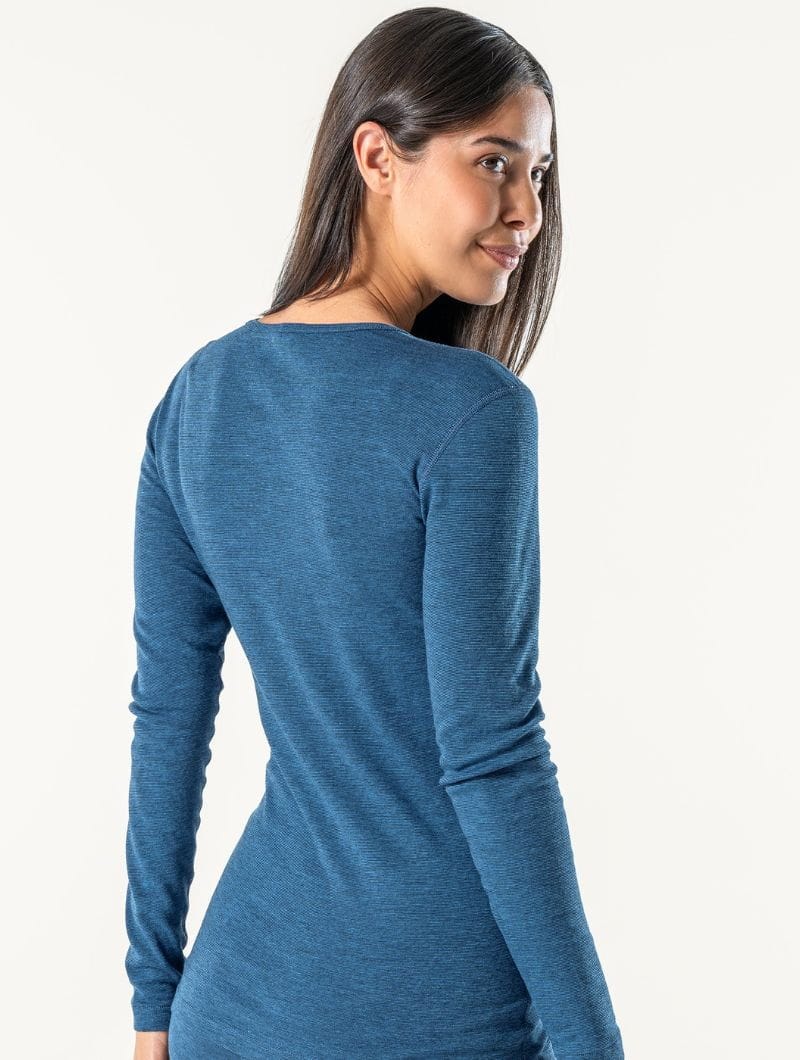 Descubre el máximo confort con la camiseta térmica de lana ecológica para mujer.