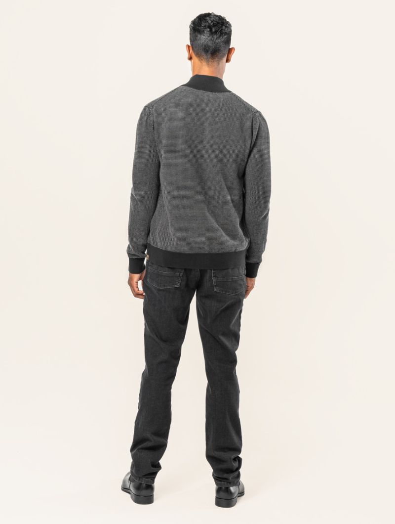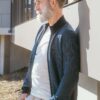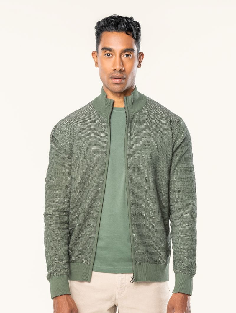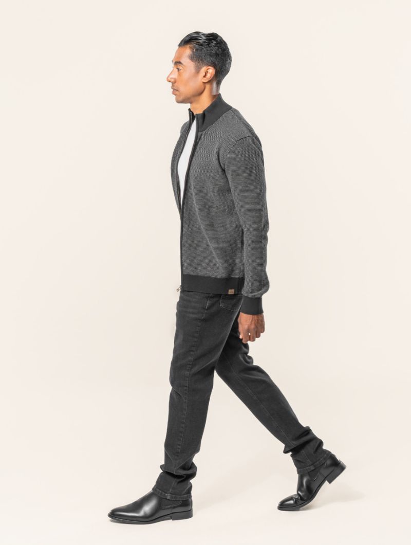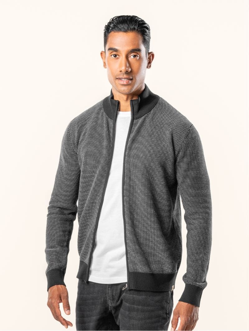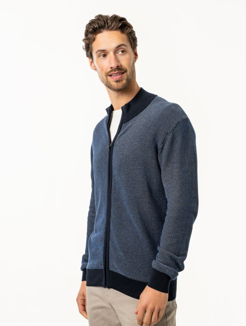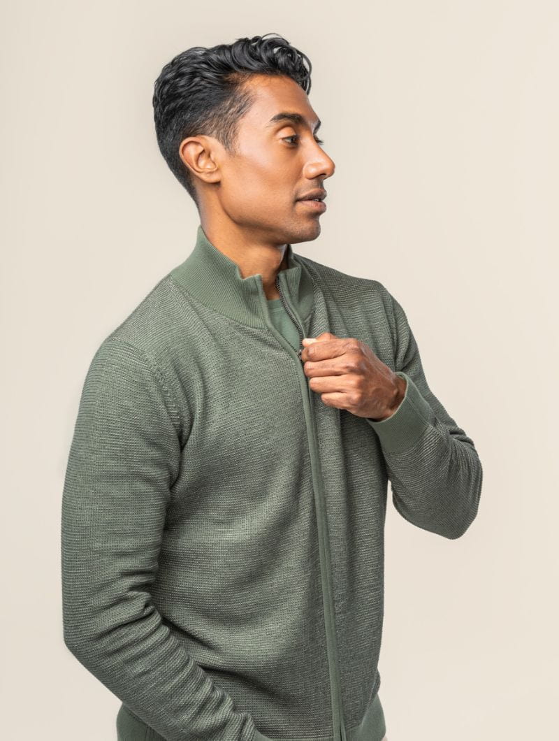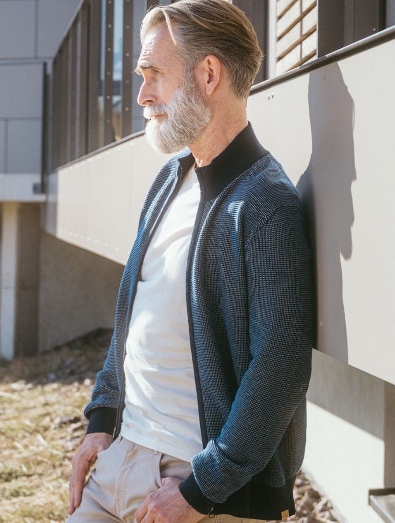 Cárdigan de punto para hombre hecho con algodón orgánico certificado GOTS.