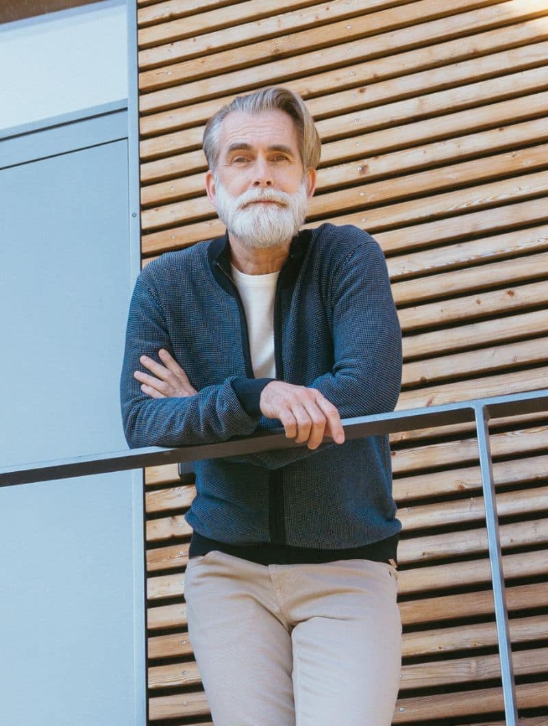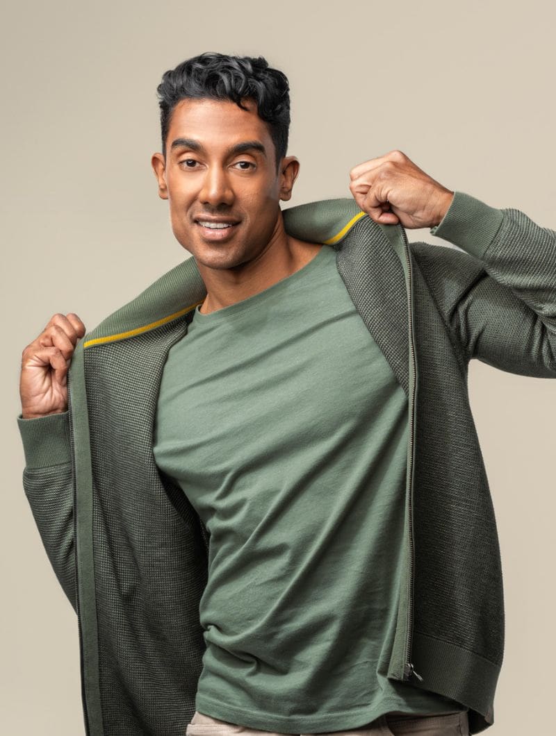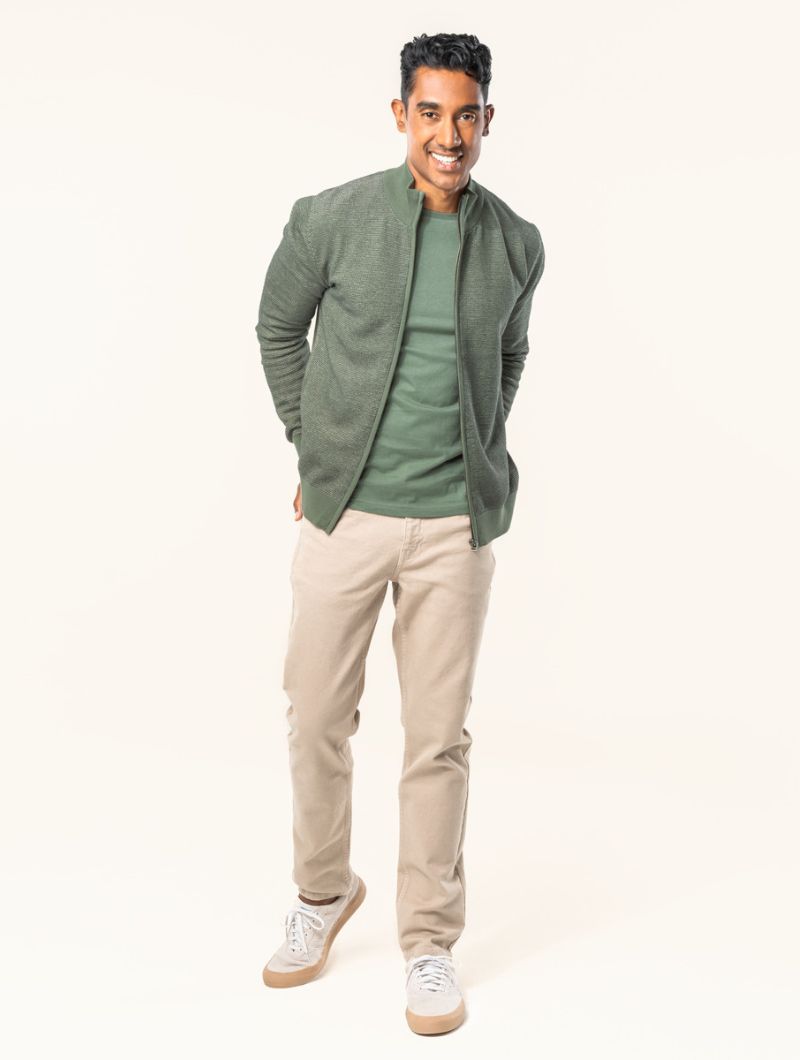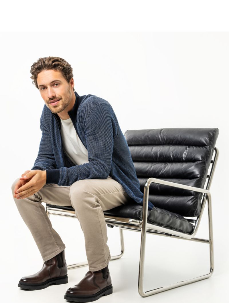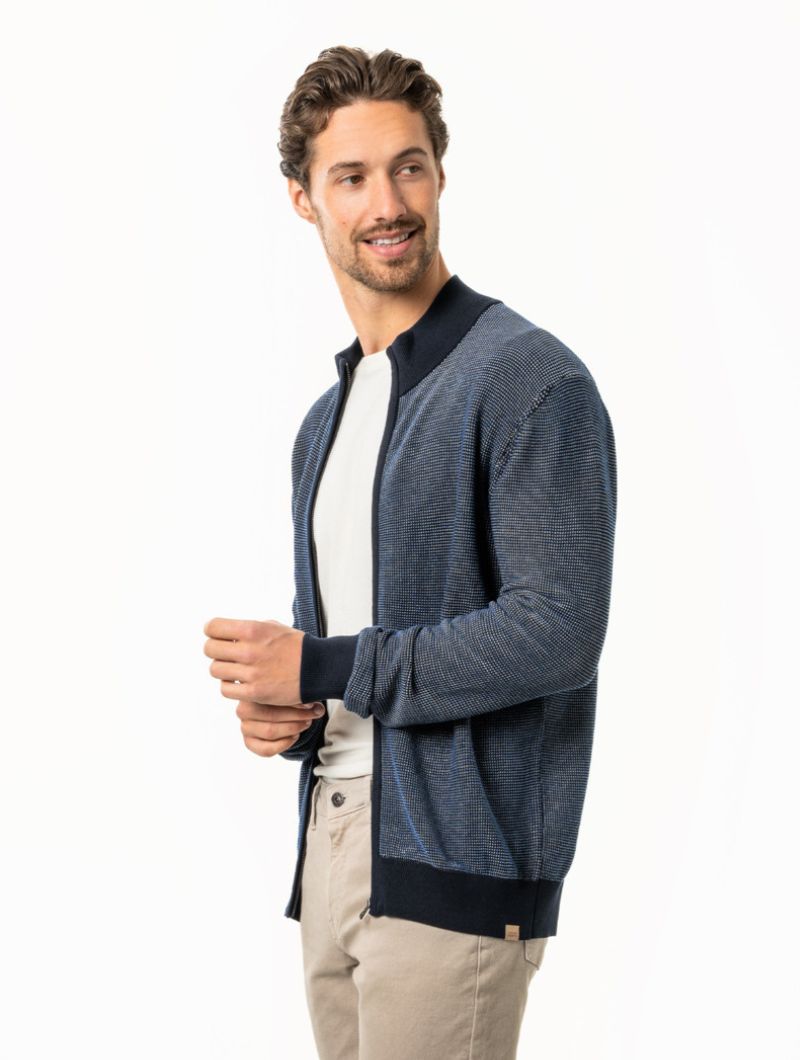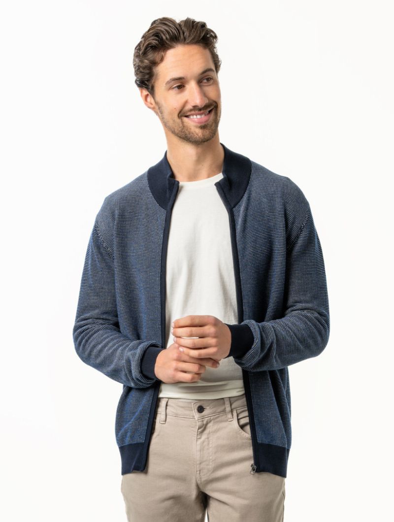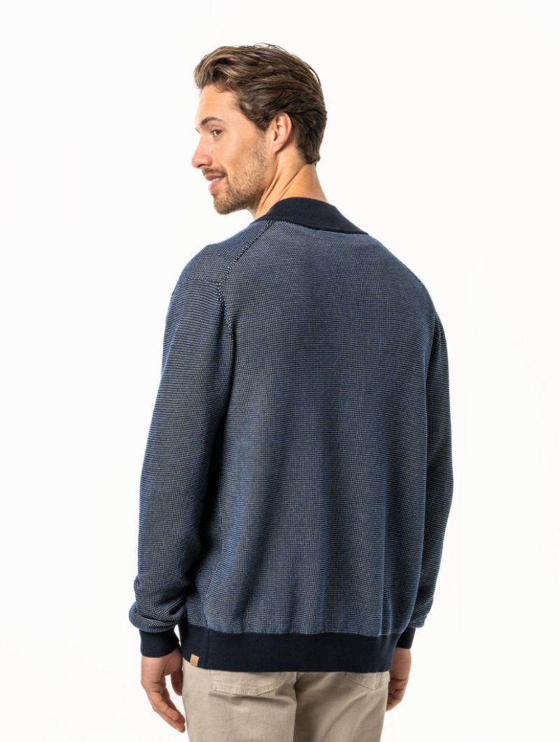Cárdigan de punto para hombre hecho con algodón orgánico certificado GOTS.