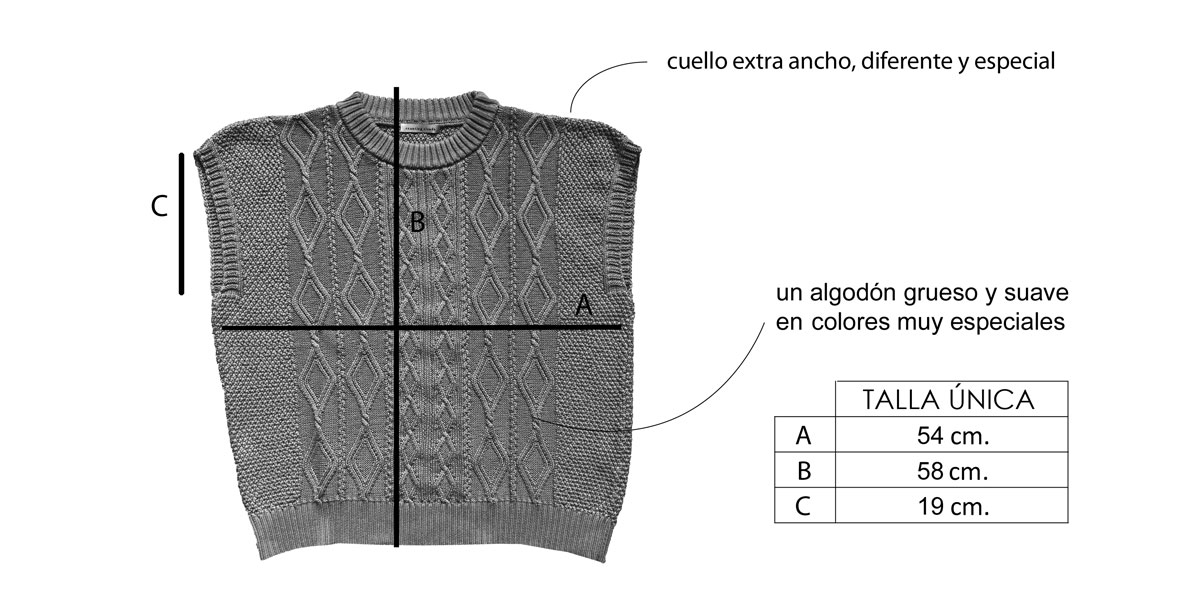 Cada chaleco está tejido en España en un pequeño taller familiar, en series limitadas.