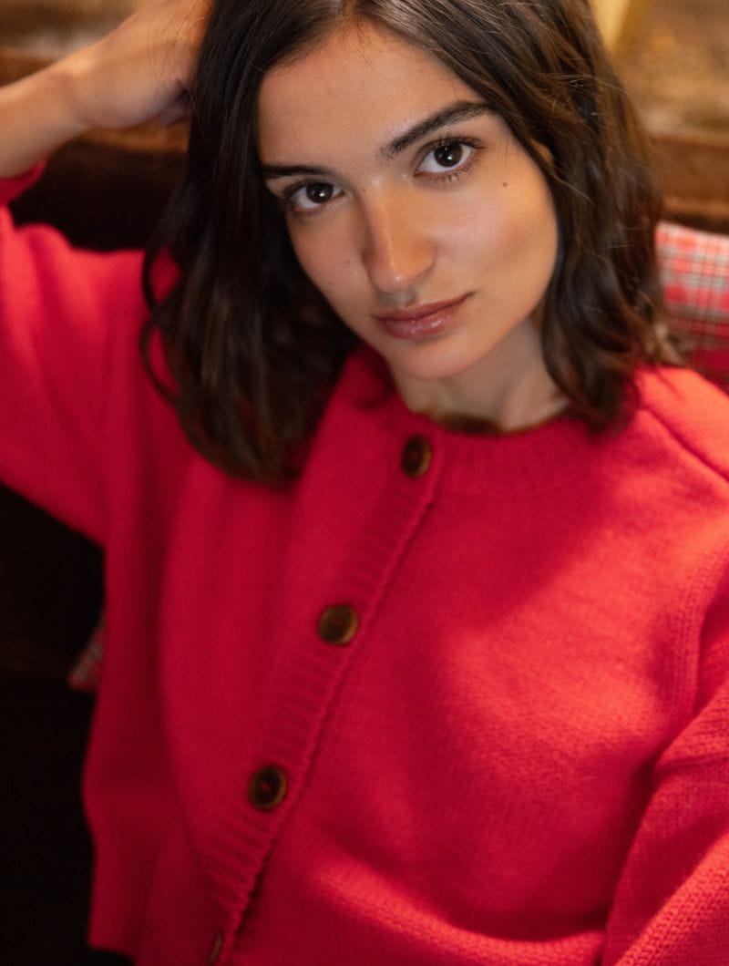 Chaqueta cropped de lana de alpaca y pura lana virgen color rojo, de nuestra marca ROADE.