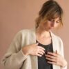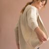 Disponible en un atractivo blanco etéreo, la chaqueta sostenible gruesa de lana merino es un básico atemporal que no puede faltar en un armario consciente y sostenible.