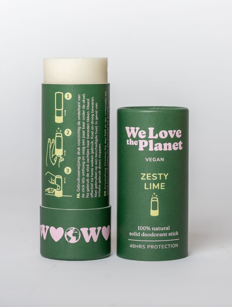 Se presenta en un envase de tipo stick de cartón reciclado, súper cómodo de utilizar y de guardar. Una vez terminado el desodorante, puedes tirar el envase a cubo de los residuos orgánicos o a una compostera, ya que se degradará en muy poco tiempo y no contaminará.