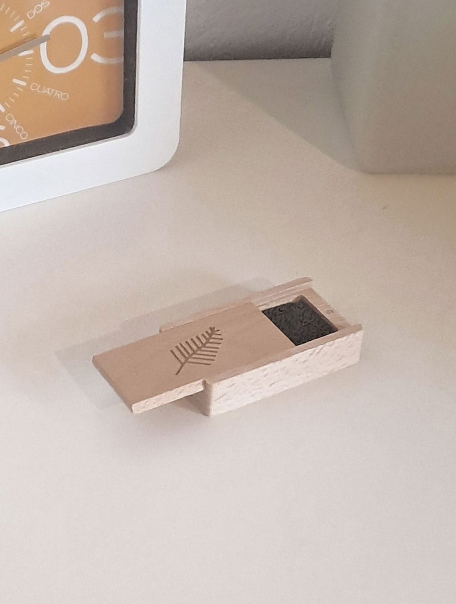 Este difusor portátil de aceites esenciales te acompañará donde quiera que vayas, ofreciéndote siempre el aroma que más te guste, el ideal para cada ocasión o aquel que mejor contribuya a tu bienestar. Se trata de un difusor pasivo portátil compuesto por una bonita cajita de madera de haya con tapa deslizante magnetizada, que en su interior alberga una piedra volcánica porosa. Esta piedra, gracias a su capacidad natural para absorber y liberar lentamente los aceites esenciales, te permite disfrutar de una fragancia duradera sin necesidad de electricidad ni calor.