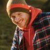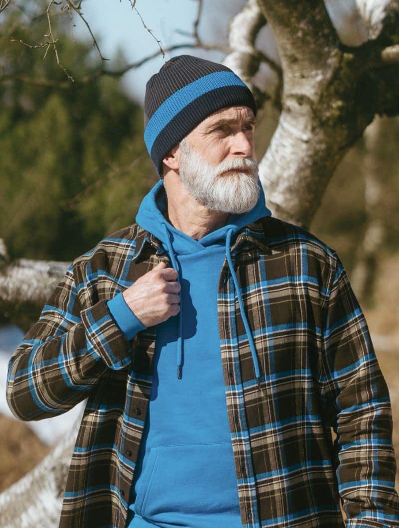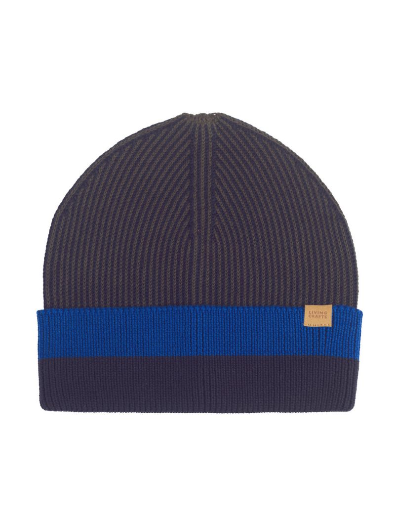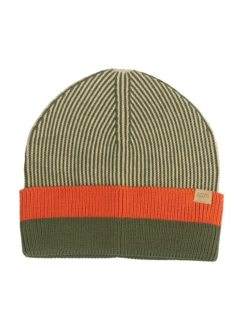 Gorro de punto bicolor confeccionado con algodón 100% orgánico certificado.