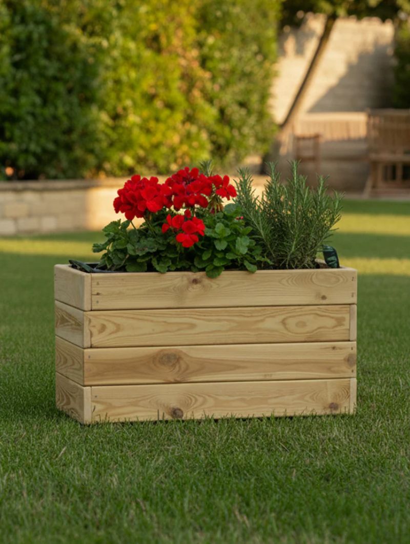 Existen multitud de variedades de plantas que permiten ser cultivadas en un macetero o una jardinera de madera como esta. Flores, plantas aromáticas, crasas, cactus o incluso árboles frutales crecerán adecuadamente en tu jardín o terraza con riegos más frecuentes y un buen drenaje.