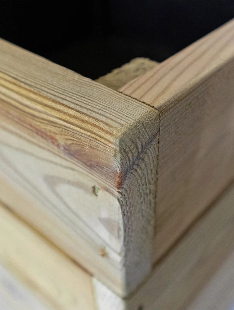 Un macetero de madera de pino de primera calidad perfecto para todo tipo de cultivos ecológicos en terrazas, balcones, patios o cualquier lugar de tu hogar.