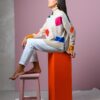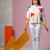 Jersey cuello alto con formas de colores de lana merino.