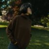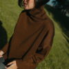 Este jersey liso en tono chocolate con cuello cisne es perfecto para abrigarte con estilo en los días fríos. Su corte oversize le da una caída fluida y un aire relajado que lo convierte en un básico con personalidad.