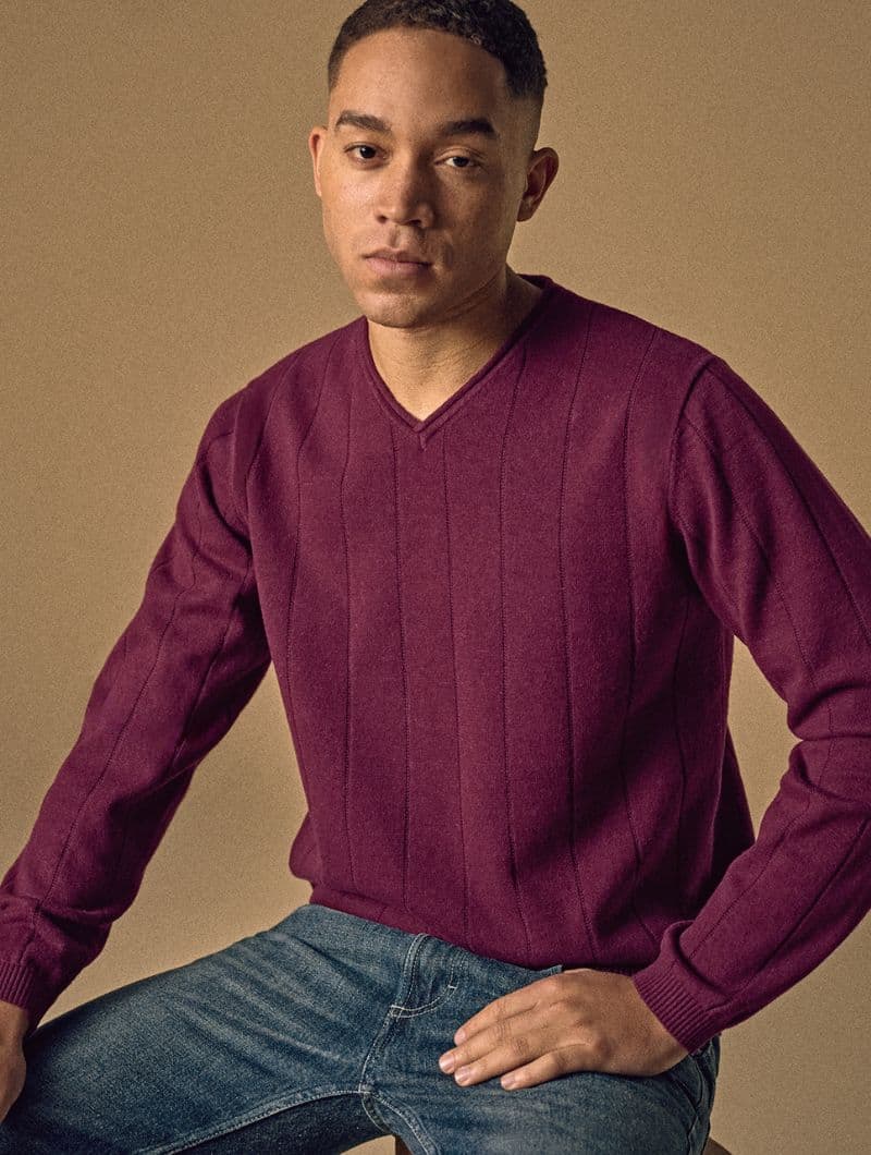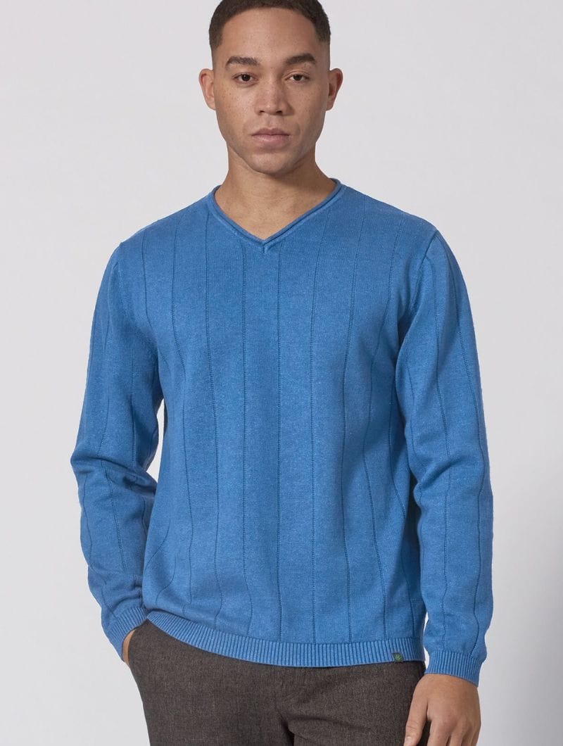 Jersey de punto con cuello pico para hombre 100% ecológico.