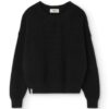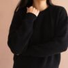 Este jersey de tricot holgado es un básico atemporal, ofreciendo comodidad y estilo en los días fríos. Su diseño con manga caída y color negro cosmos le otorga elegancia y delicadeza, siendo una prenda versátil para combinar con vestidos, faldas o pantalones.